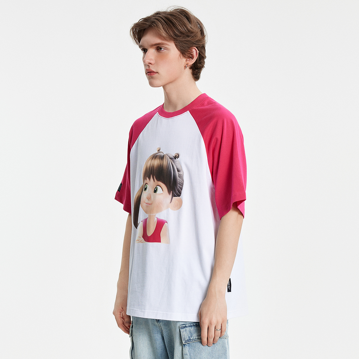 纯棉插肩显瘦T恤情侣 新款 TSMLXLT马尾女孩印花撞色短袖 男女25夏季