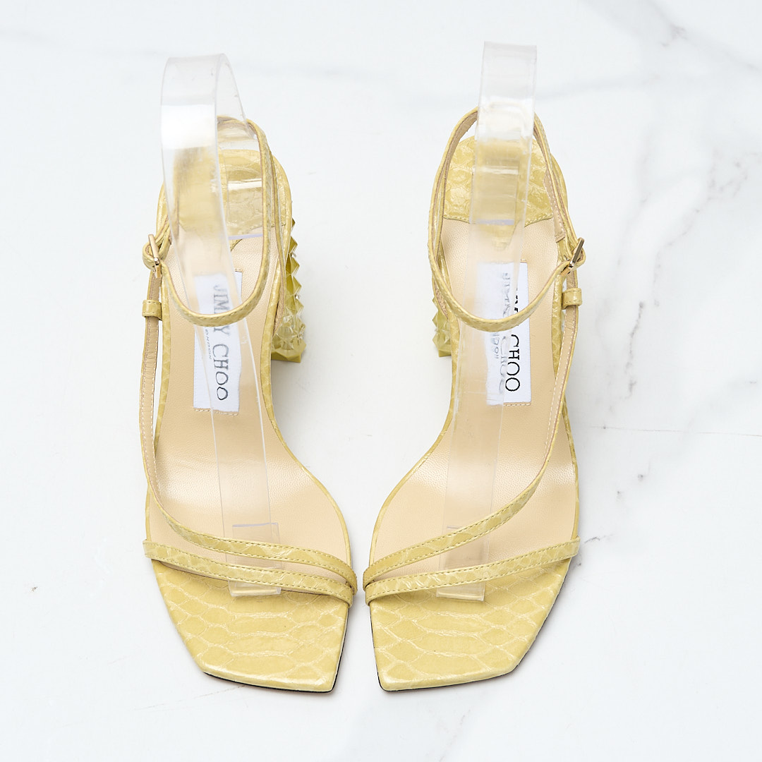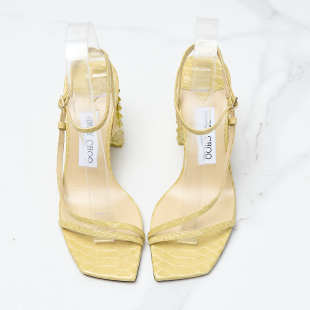 仅38 银泰 Jimmy 周仰杰女士方头鳄纹中跟露趾凉鞋 301596 Choo