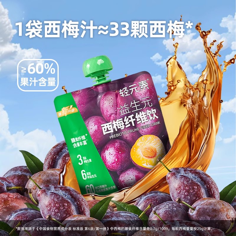 8袋官方旗舰店正品 西梅汁100ml 浓缩纯果汁大餐救星 素益生元 轻元