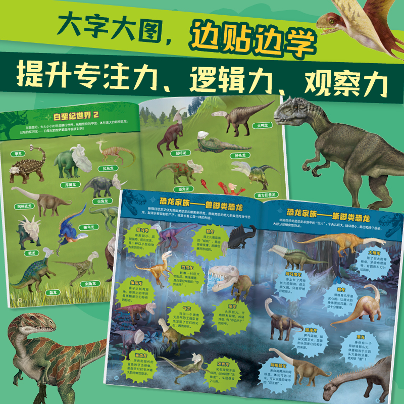 1000个贴纸全收藏超级恐龙迷冰雪奇缘苏菲亚赛车总动员3 6岁幼儿益智游戏贴纸书幼儿园启蒙百科知识迷宫