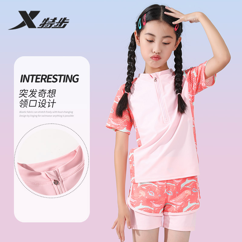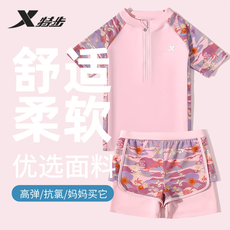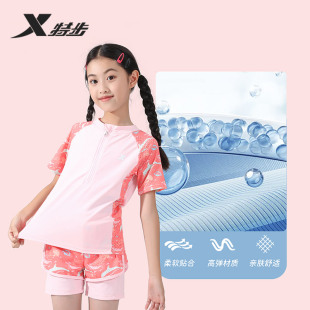 特步儿童泳衣女童2025新款 分体舒适防晒速干中大童专业游泳衣女孩