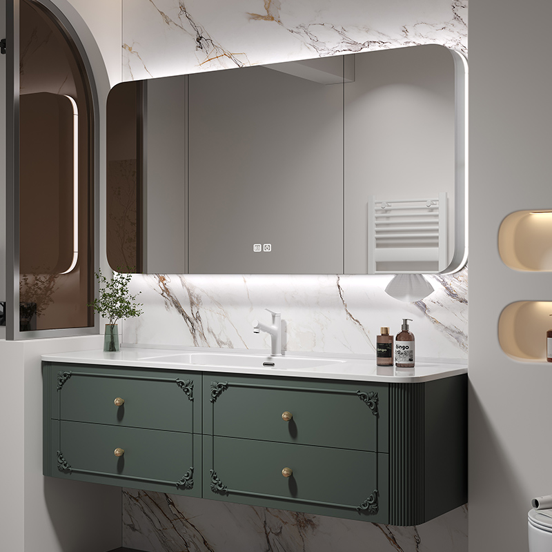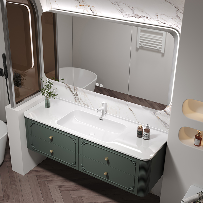 轻奢复古浴室柜组合2025新款 卫生间洗手洗脸盆柜墨绿色洗漱台橡木