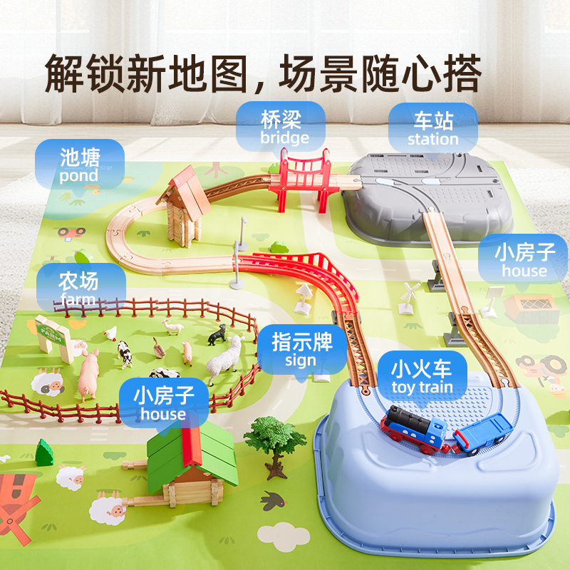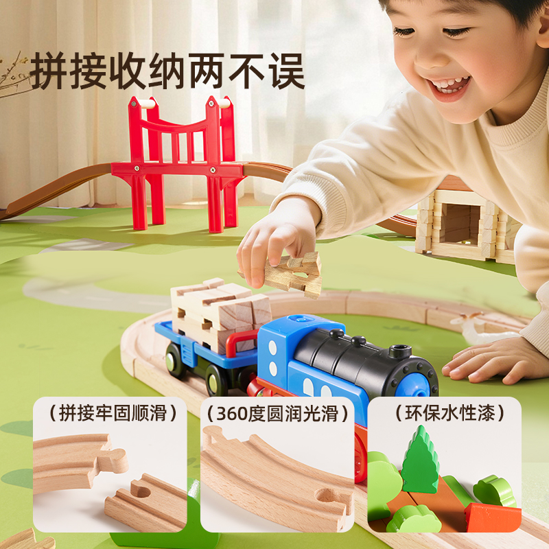 美乐童年火车轨道车玩具积木男女孩益智电动汽车模型 双11预售