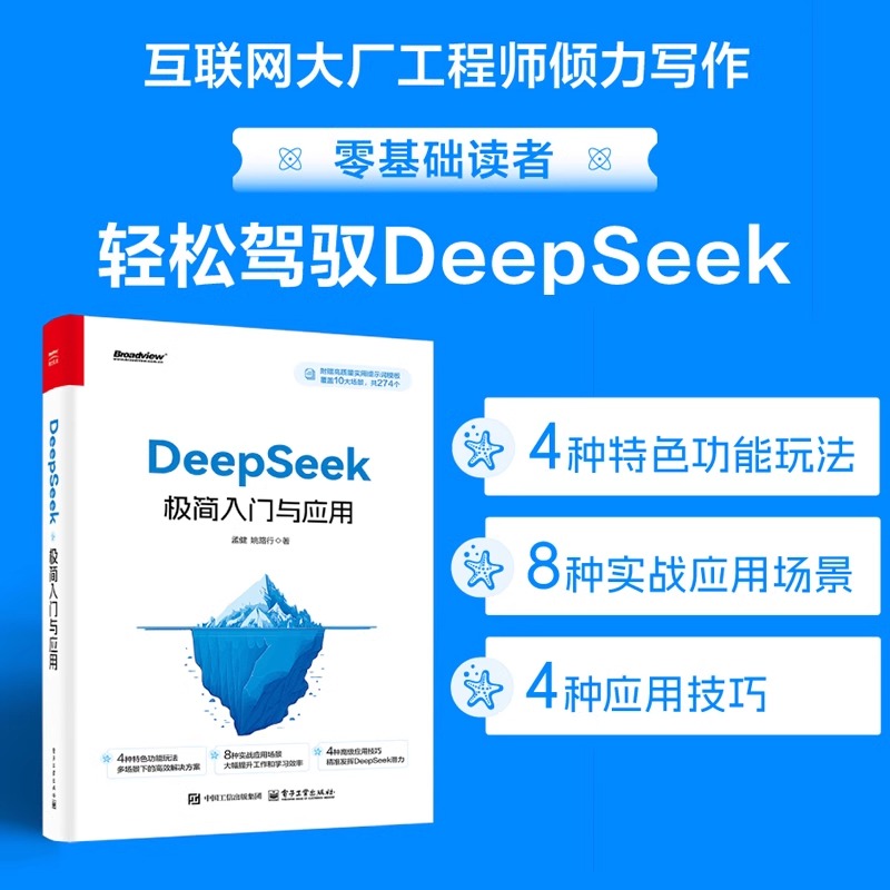 教程书 ai人工智能零基础掌握实战使用教程资料书籍完整版 抖音同款 deepSeek极简入门与应用Deepseek从入门到精通2025实用指南正版