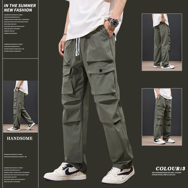 褶皱伞兵长裤 2025夏季 潮流个性 宽松直筒舒适透气美式 青少年 伞兵裤