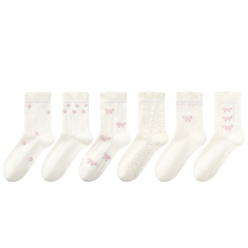 袜子纯棉白色透气网眼中筒袜 玛丽珍鞋 恒源祥袜子春秋薄款 女士法式