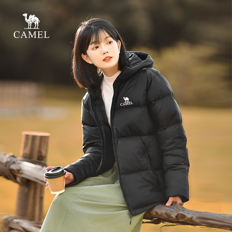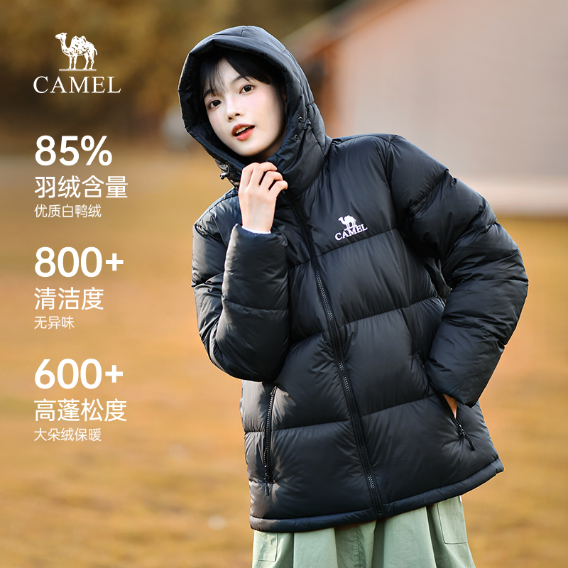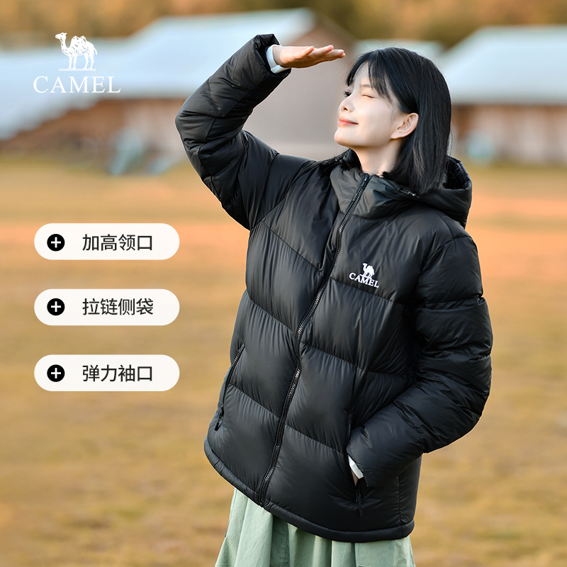 品牌羽绒服 秋冬羽绒保暖外套黑色短款 骆驼火山羽绒服女装 2025新款