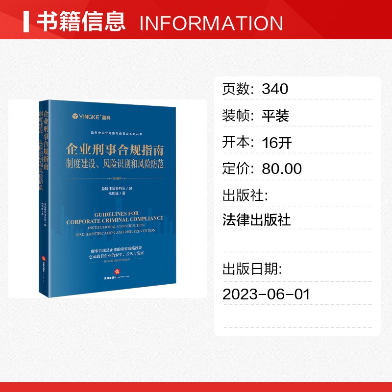 编 图书籍 风险识别和风险防范 新华书店正版 实务解析社科 司法案例 盈科律师事务所 著 代现峰 制度建设 企业刑事合规指南