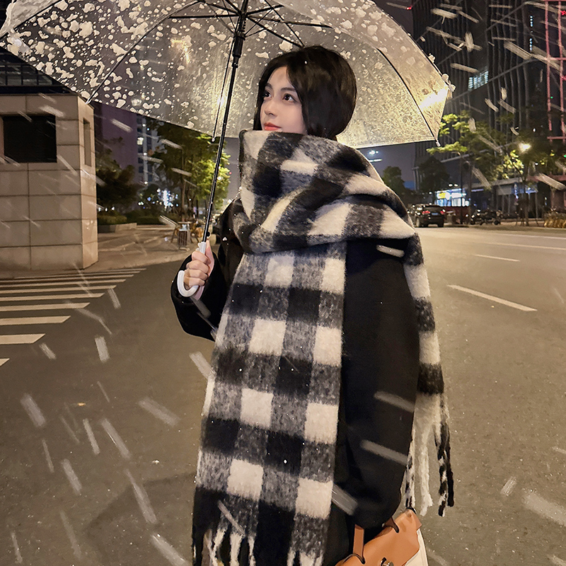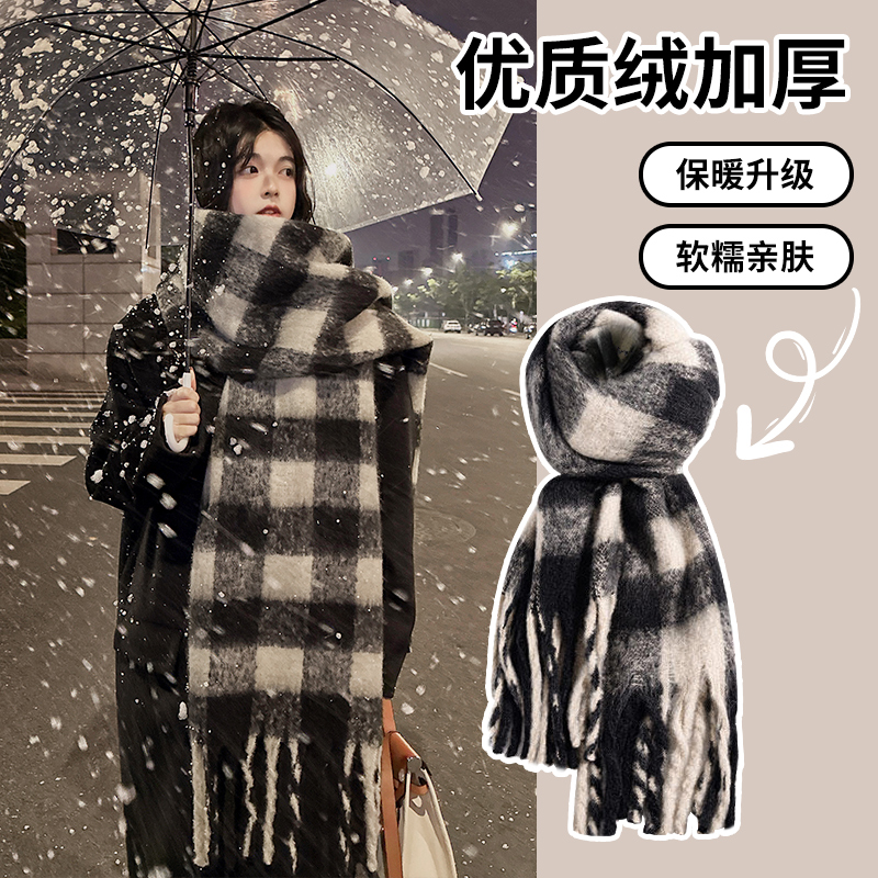 高级感氛围加厚黑白格子围巾女生冬季 大披肩 韩系秋冬围脖2025新款
