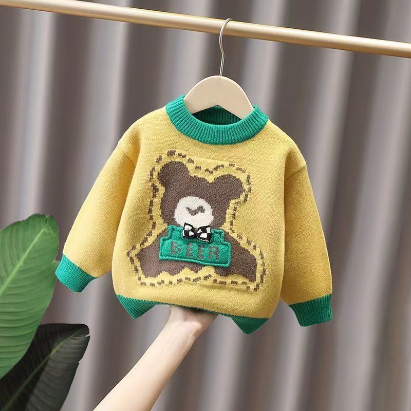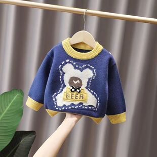 LAMLICKA蓝色小狗圆领套头毛衣男秋季 上衣 宽松慵懒风设计感针织衫
