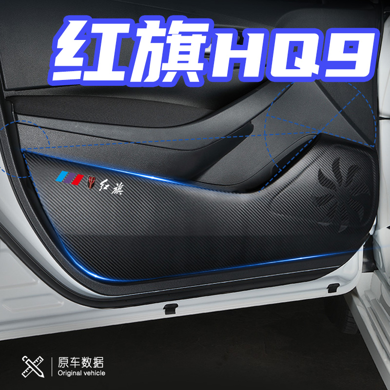 适用于红旗HQ9车门防踢垫防刮踩保护贴膜内饰改装 饰汽车用品配件