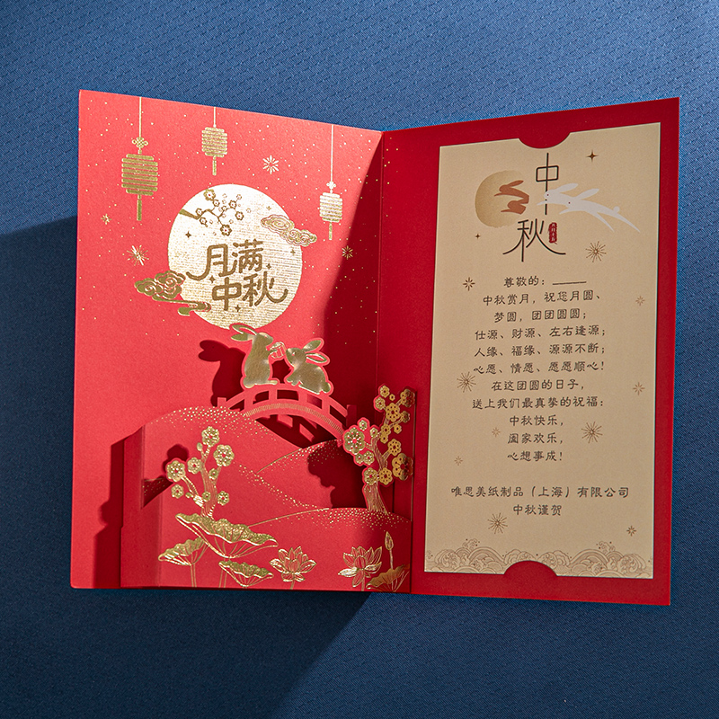创意中秋节贺卡信封套装 高档镂空中国风商务企业公司送员工客户感谢月饼礼盒礼品祝福感恩礼物卡片 2025新款