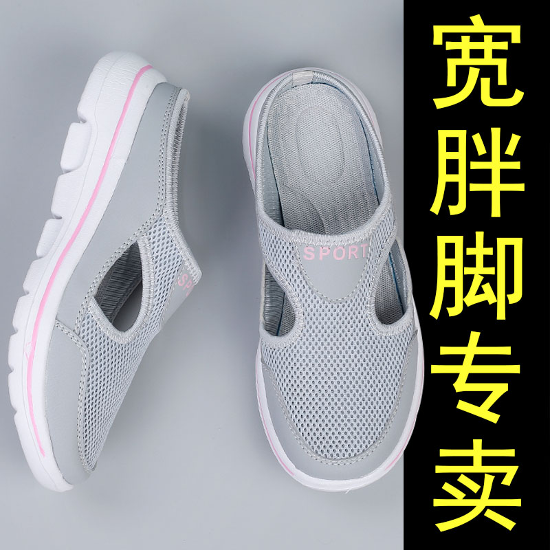 半拖42老北京布鞋 妈妈鞋 包头大码 脚浮肿宽松拖鞋 女 胖脚宽肥孕妇鞋