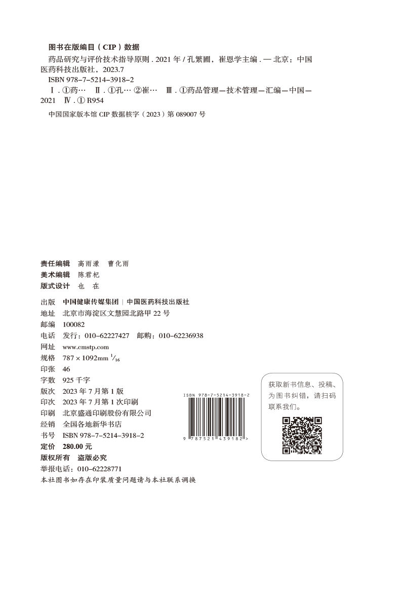 药品研究与评价技术指导原则2021年 社 孔繁圃 中国医药科技出版 9787521439182 崔恩学主编 现货正版