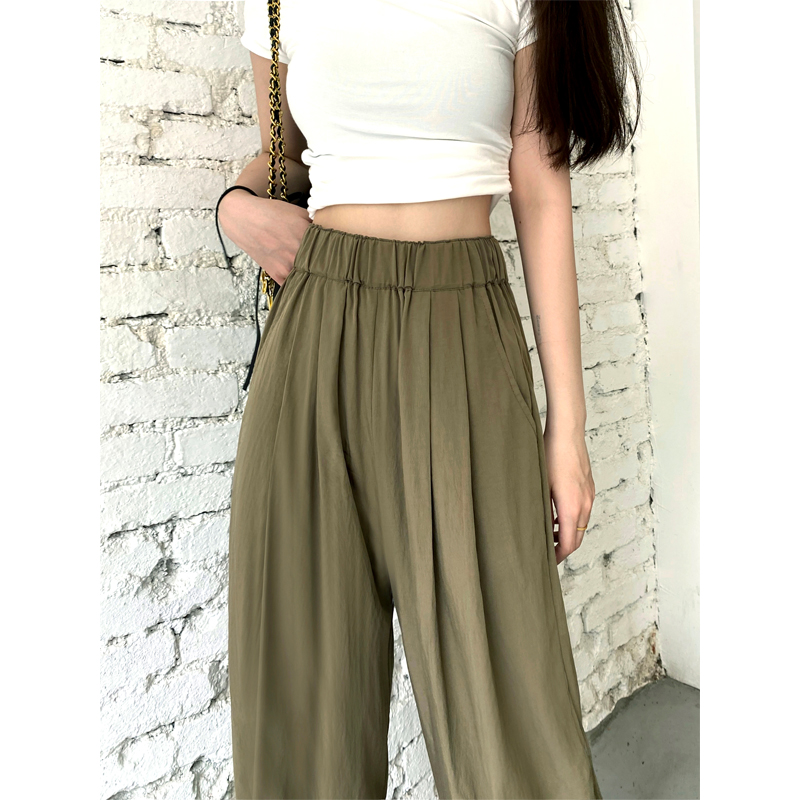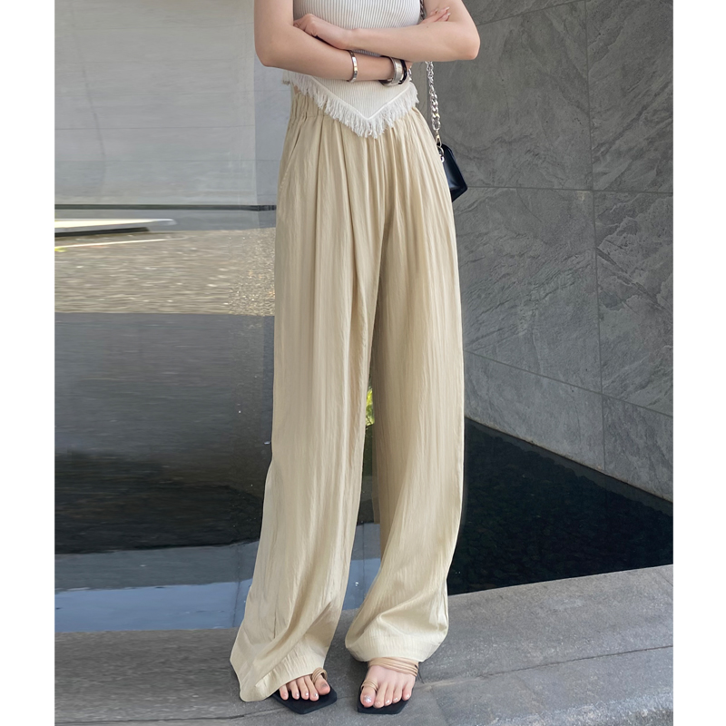 女春秋新款 休闲直筒慵懒松弛感裤 高腰垂感窄版 裤 子 西装 黑色阔腿裤