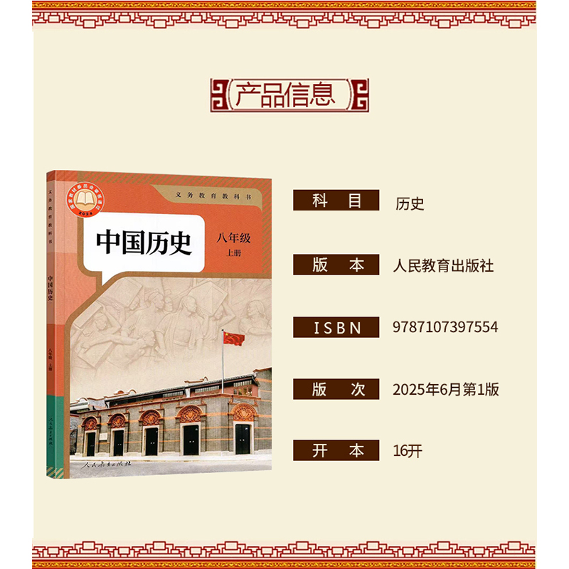 正版 社初2二上册历史八上历史书八年级上册中国历史书课本教材教科书人教版 课本人民教育出版 2025适用初中8八年级上册历史书人教版