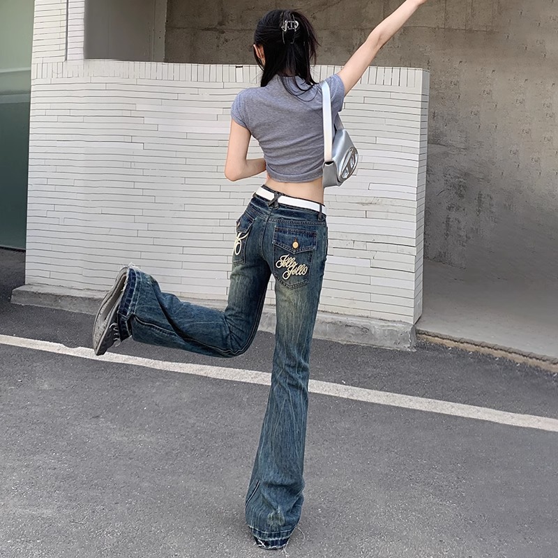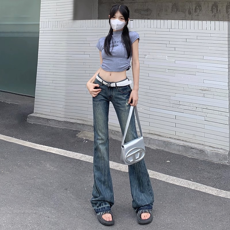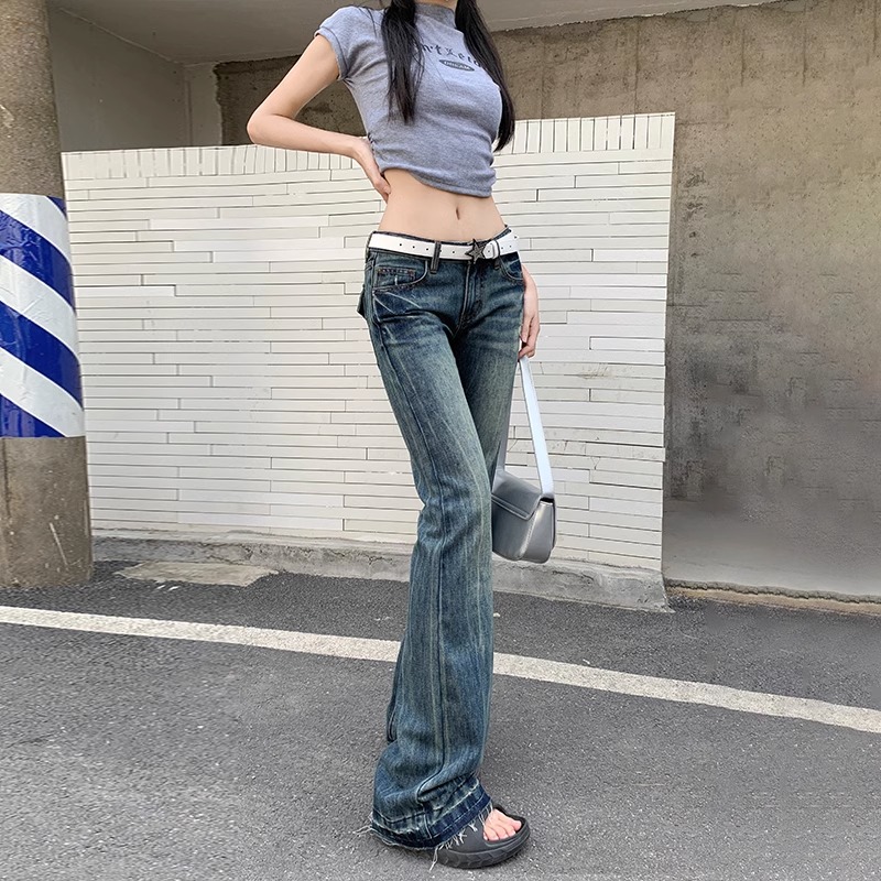 显瘦辣妹拖地喇叭长裤 女低腰修身 高街复古微喇牛仔裤 RNBN秋冬美式
