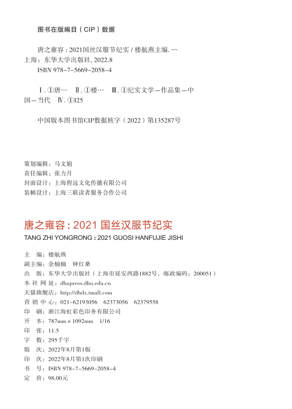 东华大学出版 知识唐朝 社 国丝馆唐之雍容2021国丝汉服节纪实汉服节情况中华古代服装 官方旗舰店