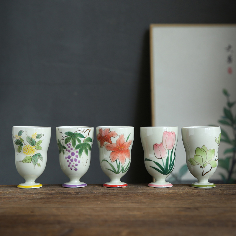 文艺新品 陶瓷闻香酒杯品酒杯烈酒杯家用手绘陶瓷白酒杯