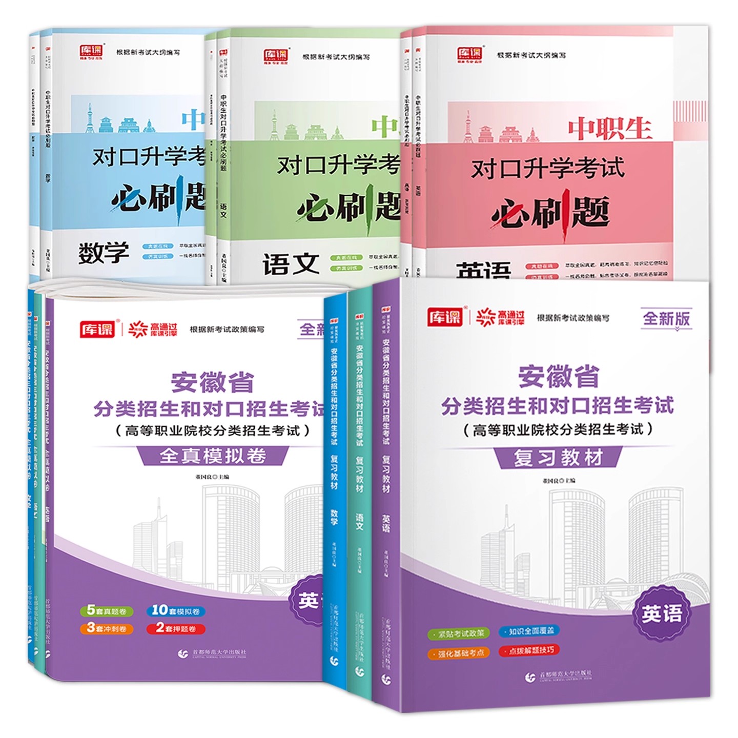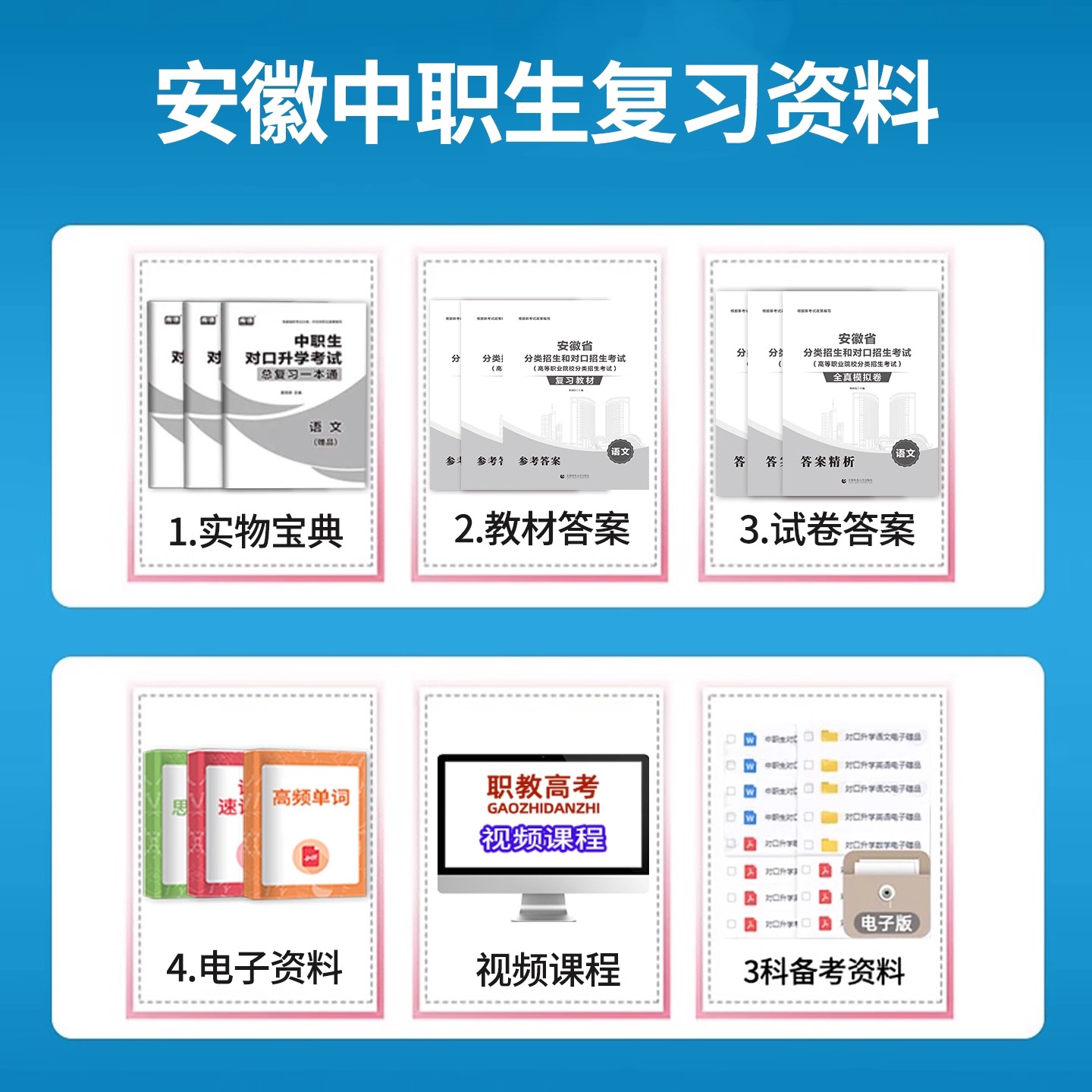 安徽省备考2026年分类招生考试中职生对口升学总复习教材中专升大专职高扩招单招考试真题模拟试卷高职高考数学英语语文必刷题2025