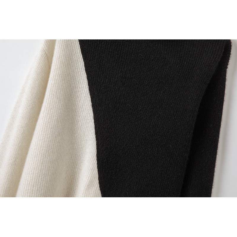 圆领100%纯山羊绒衫 灰色宽松打底上衣 女毛衣秋冬假两件拼色针织衫