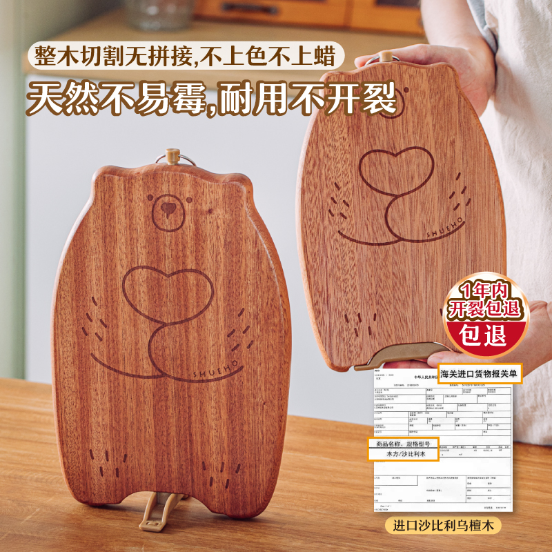 炊大皇整木乌檀木菜板防霉抗菌家用砧板实木切菜板厨房专用案板