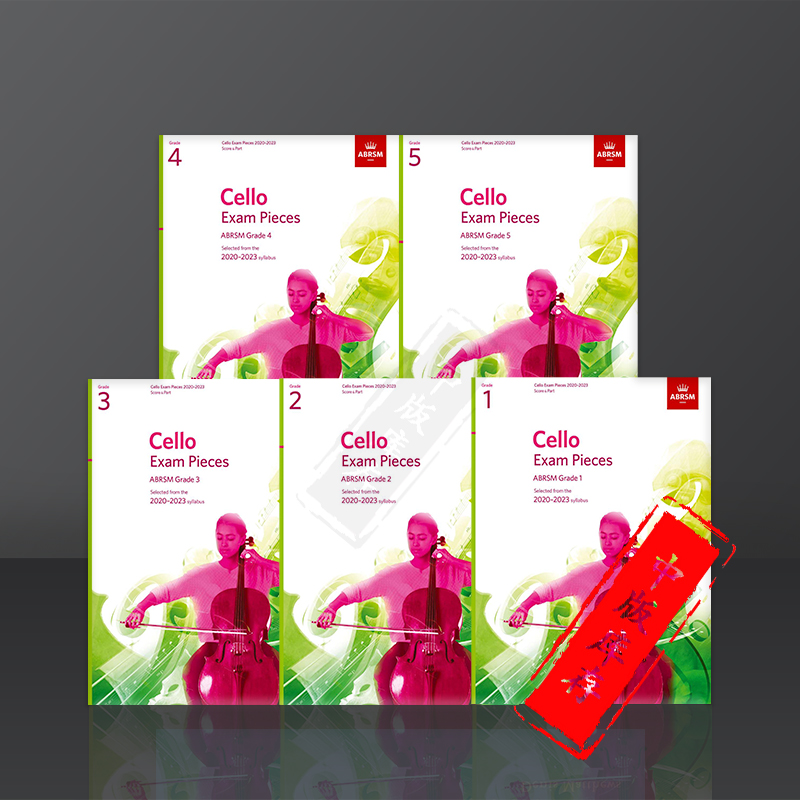 2023 无音频 含钢伴谱 英皇大提琴考级作品 乐谱书 Grade Pieces 全套共一至五级 Exam Cello Part Score ABRSM英文原版 2020