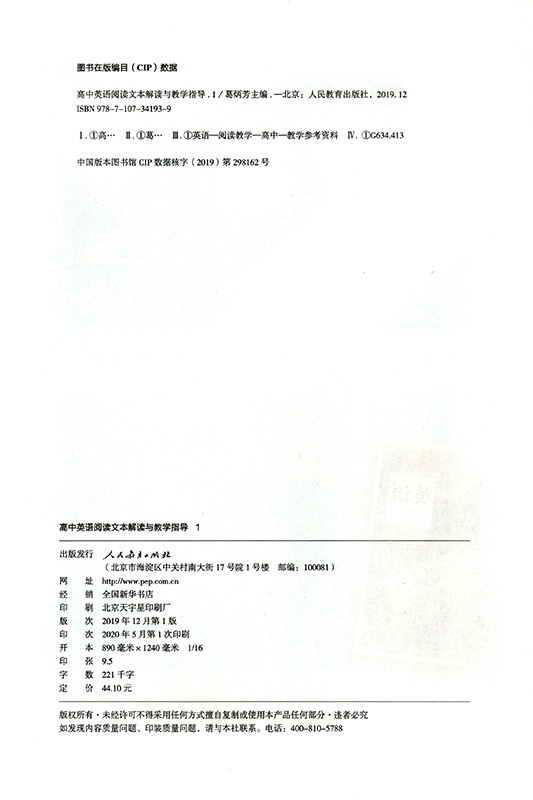 包邮 高中英语阅读文本解读与教学指导1 葛炳芳主编 社 正版 人民教育出版 978710734193 团购优惠
