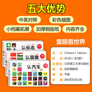 认国旗 认标志 儿童绘本0 幼儿看图识物早教书 童眼看世界 6岁婴幼儿童宝宝启蒙亲子读物汽车车标大全标志图书籍 认名车认汽车