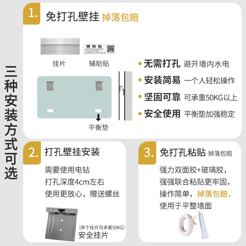 简约无框浴室镜壁挂式 卫生间镜子挂墙免打孔贴墙洗手台卫浴玻璃镜