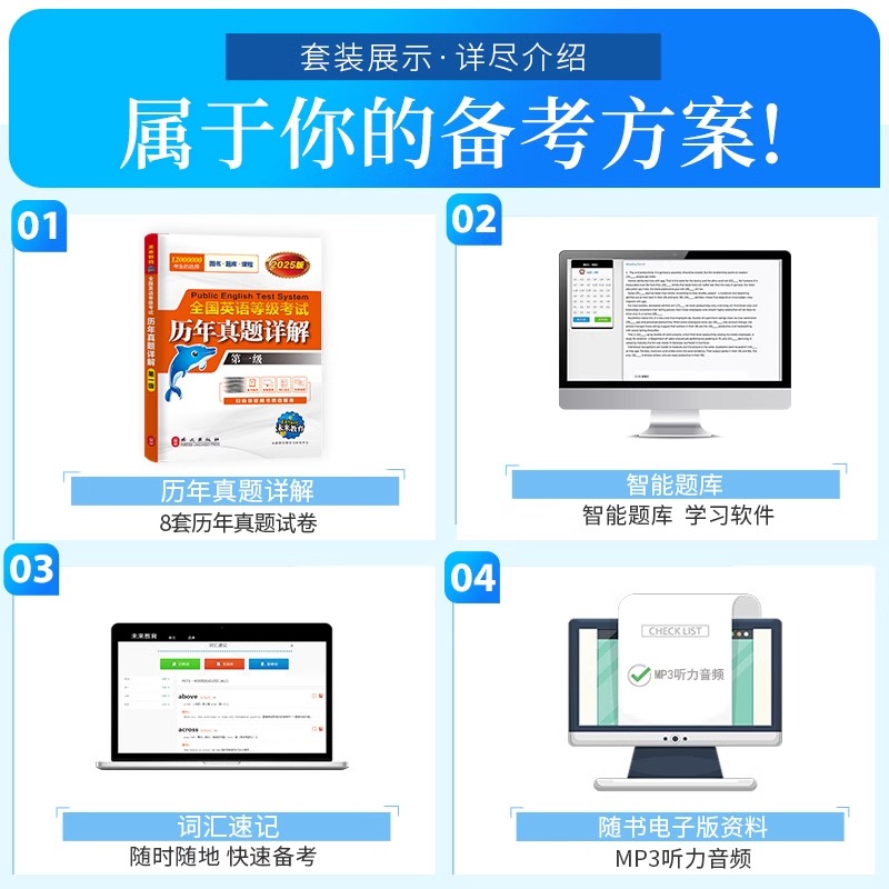 未来教育公共英语一级历年真题库试卷2026年全国等级考试pets1级教材模拟试题2025过复习资料包听力专用套卷阅读练习单词口试教程