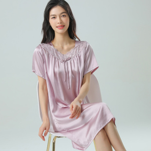 短袖 新款 裙子绵绸加大码 棉绸睡裙睡衣夏天2024年春秋季 人造棉 薄款