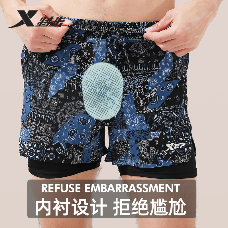 男士 游泳装 泳裤 男款 备 泳帽泳镜三件套温泉防尴尬沙滩裤 特步游泳裤