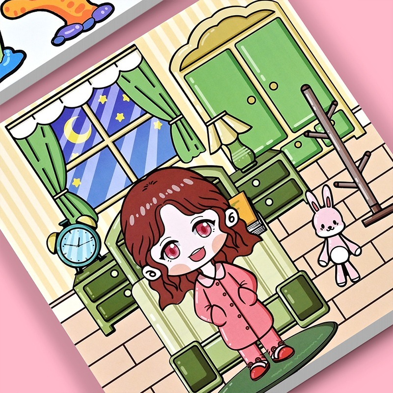 贴纸画换装 书可爱卡通少女心手工diy玩具免裁剪迷你换装 豆豆本子 饰小图案颜值高换装 小麻薯贴纸书女孩儿童装