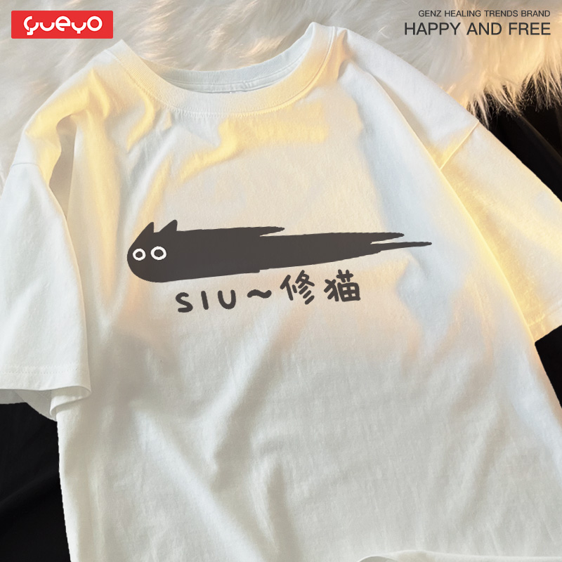T恤原创纯棉情侣装 猫狗卡通情侣短袖 长修猫修勾 「七夕」悦游