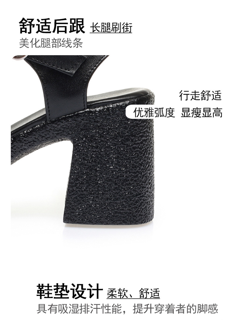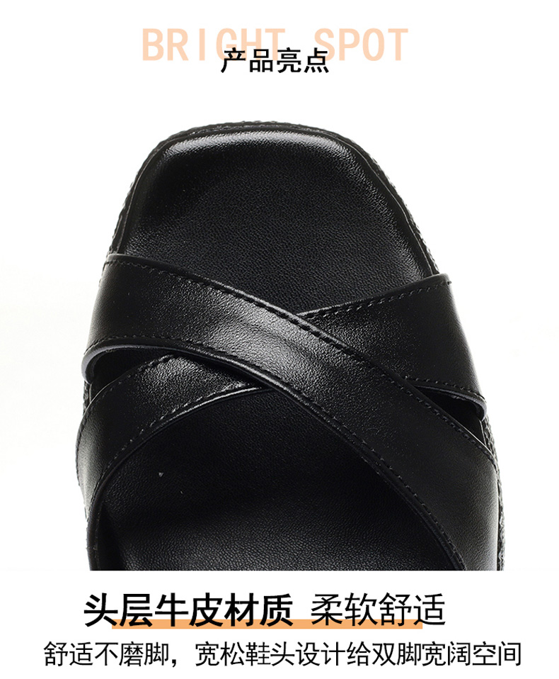 防水台厚底中年女士妈妈不累脚女鞋 模特走秀高跟鞋 女夏款 真皮凉鞋