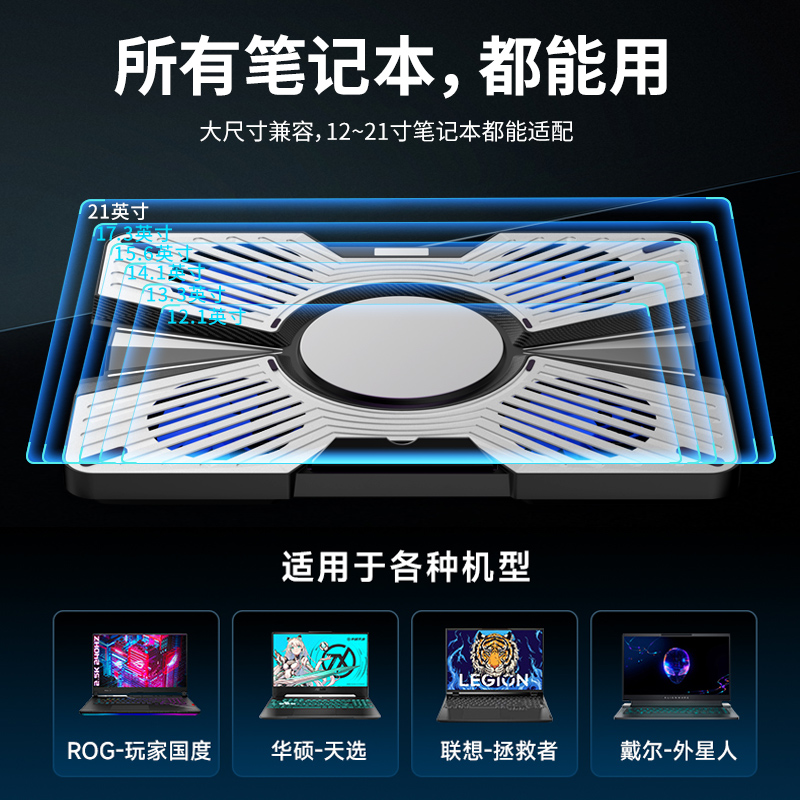 笔记本散热器适用于外星人散热底座拯救者y9000p风扇rog游戏本电脑支架y7000p压风式 散热板制冷半导体静音