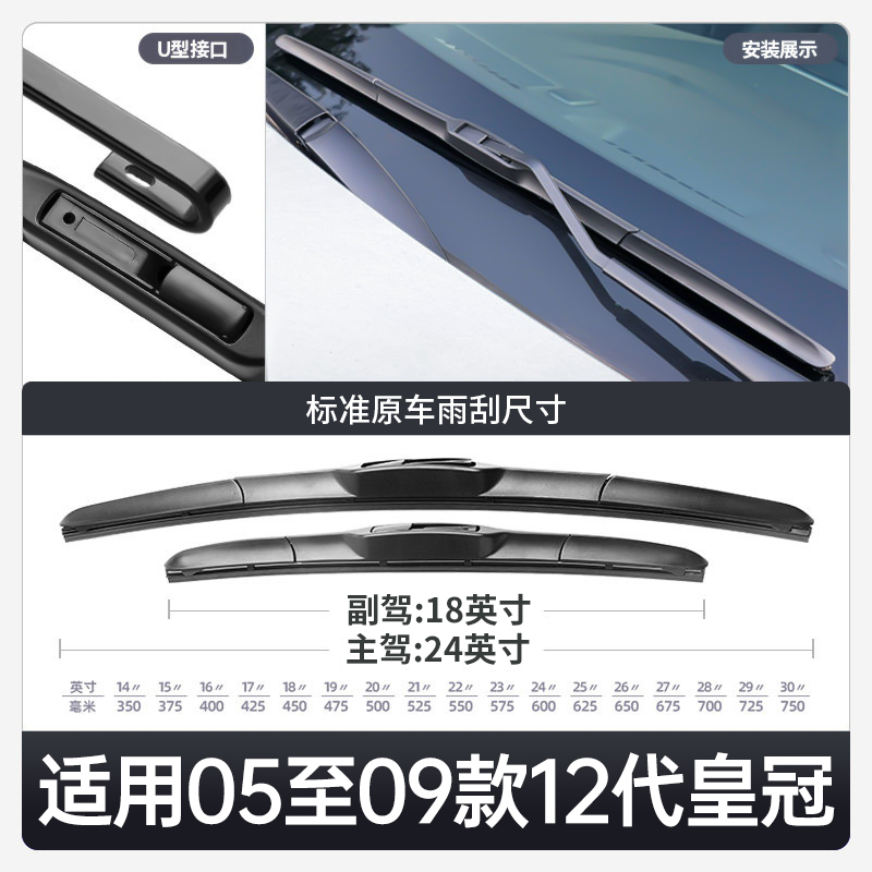 适用丰田12代皇冠雨刮器十二代07款 汽车胶条无骨雨刷 09老原厂原装