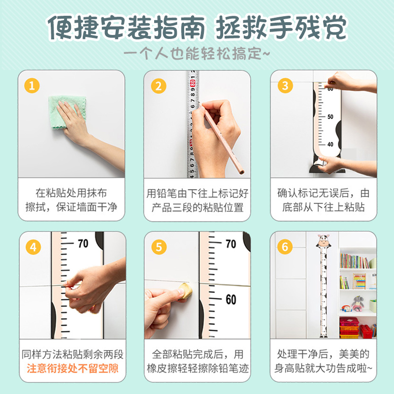 身高贴可移除不伤墙不留胶透明儿童测量身高墙贴神器身高尺墙纸