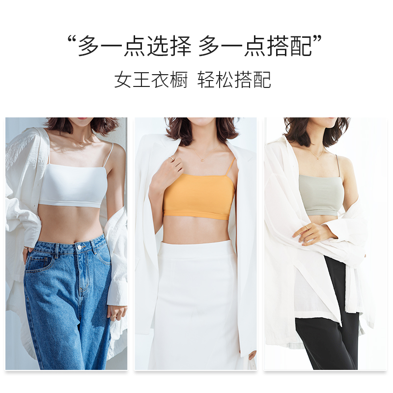 美背吊带抹胸小胸内衣女夏季 防走光裹胸内搭打底背心一体文胸 薄款