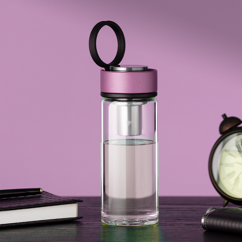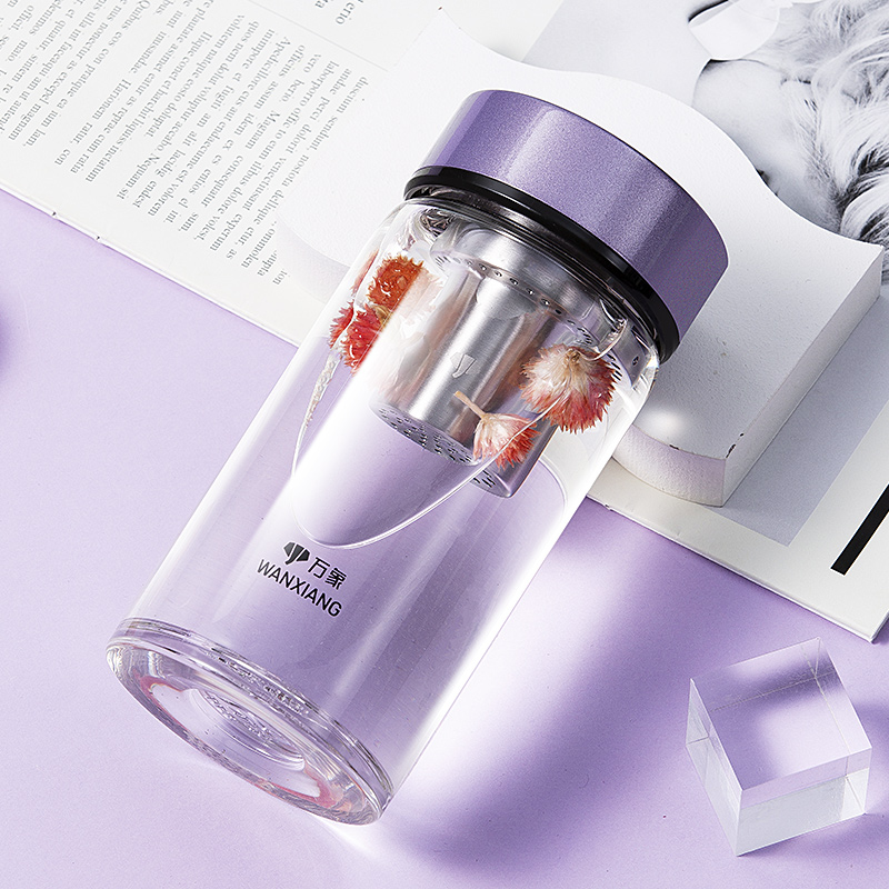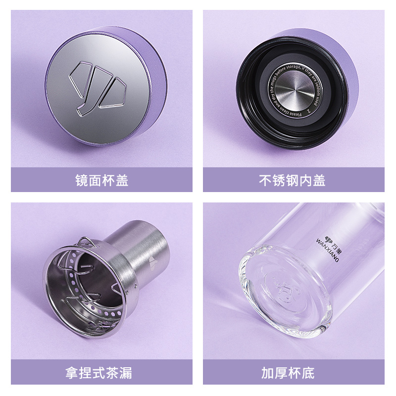 万象单层玻璃杯男女带滤网水杯新款 花茶杯家用便携提环杯U260 个性