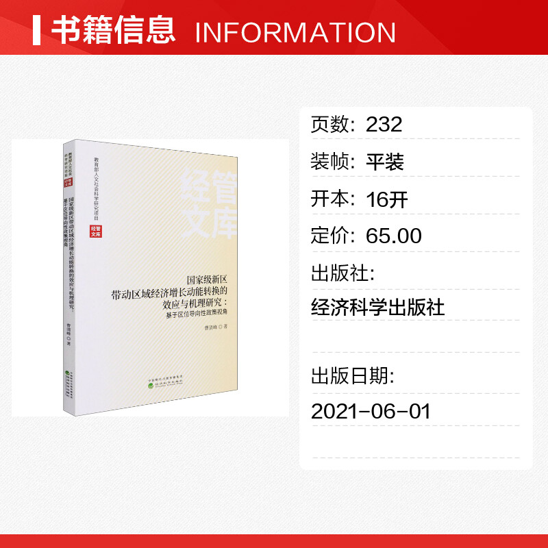 效应与机理研究 金融投资经管 基于区位导向性政策视角 著 励志 曹清峰 国家级新区带动区域经济增长动能转换