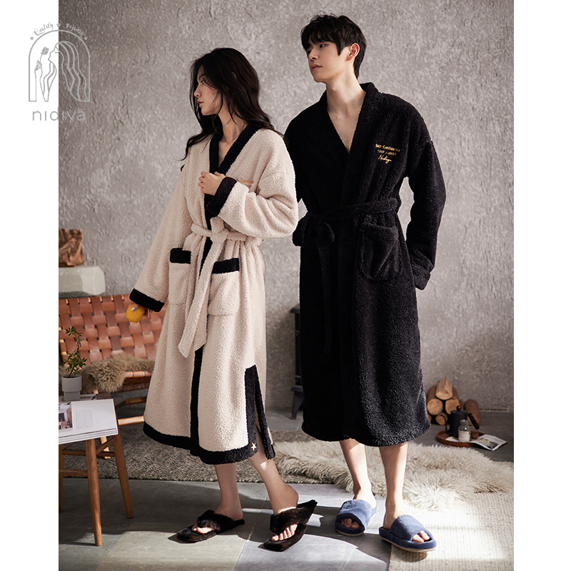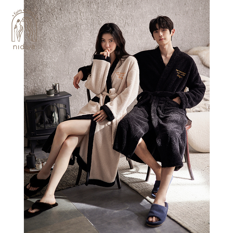 男士 时尚 简约浴袍家居服 情侣睡衣睡袍女冬珊瑚绒中长版 妮狄娅新款