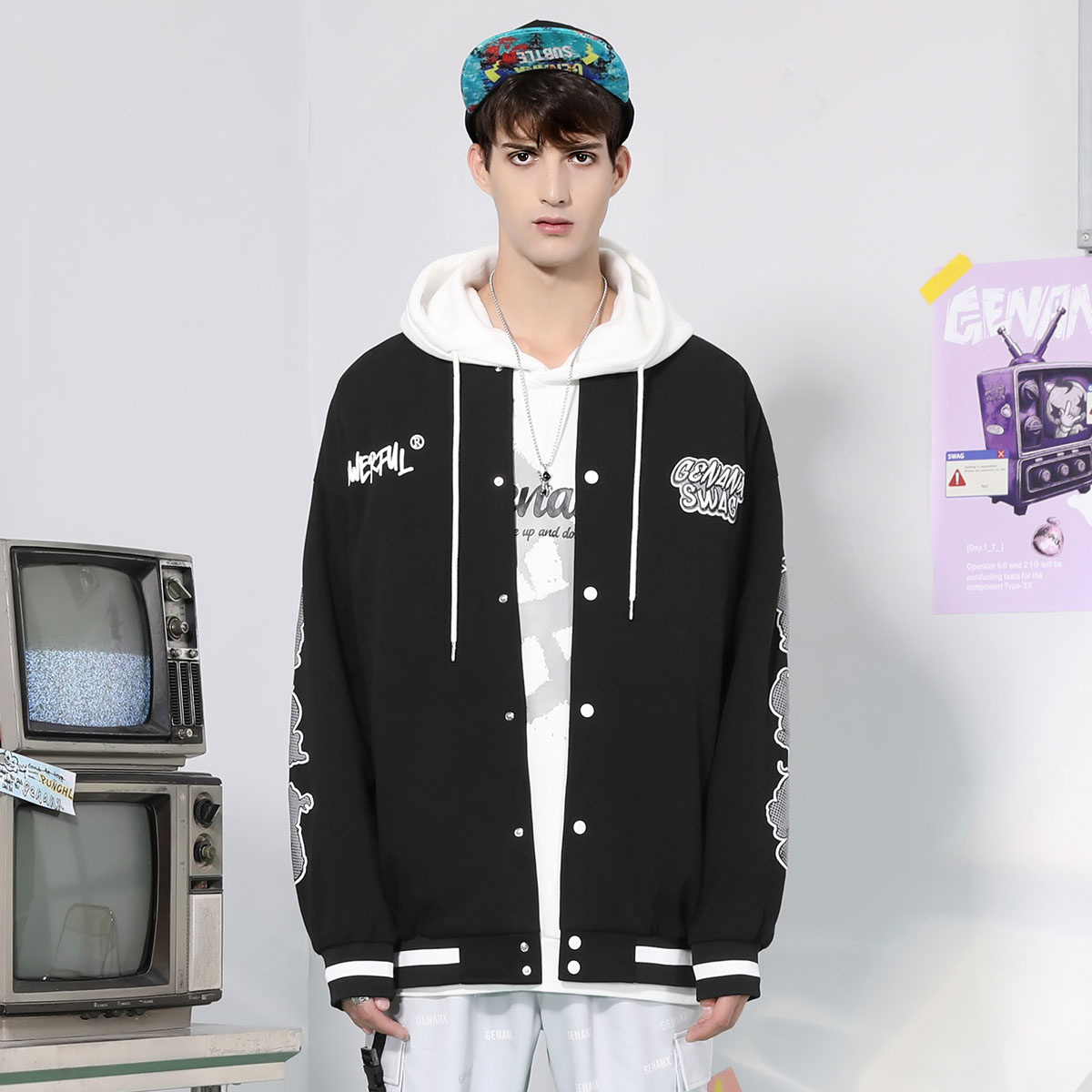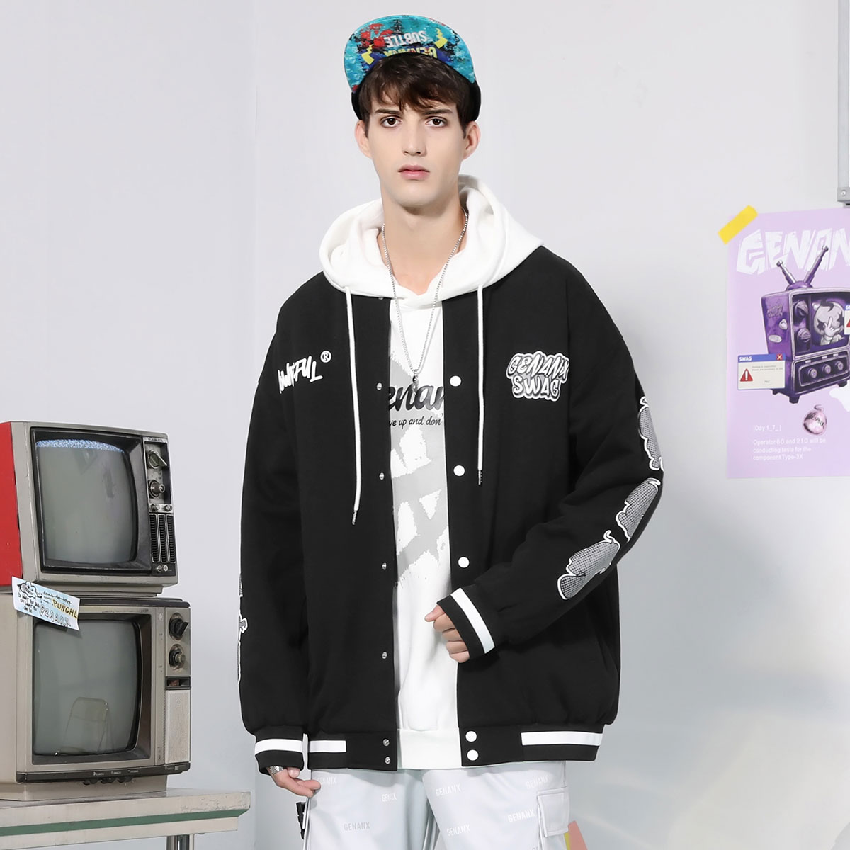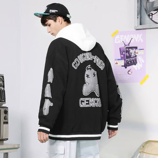 森马夹克男三防外套时尚 户外运动风连帽上衣宽松潮流 撞色拼接春装