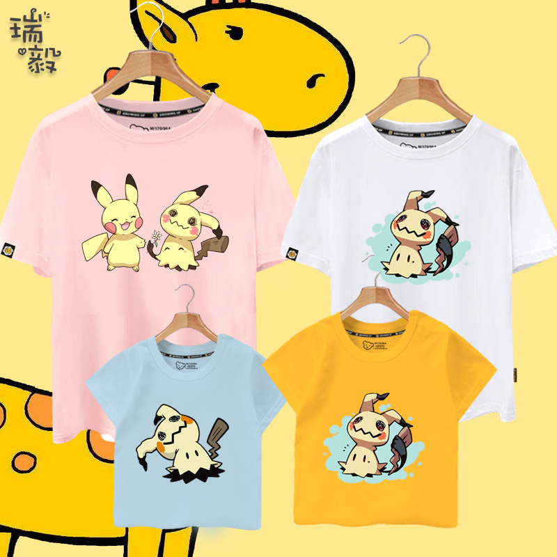 半袖 谜拟q迷你丘精灵宝可梦皮卡丘联名亲子装 男女全家款 T恤衫 短袖