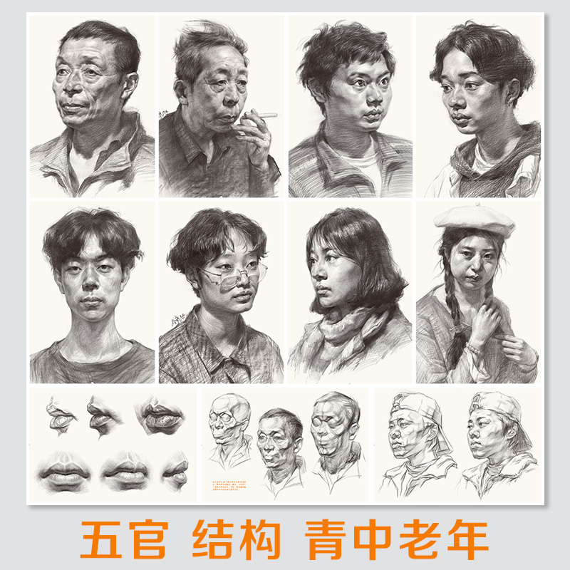 美院联考美术高考名师示范教材正版 8开临摹范本人物绘画入门基础创意卡片结构五官解析对画照片教程 书籍 素描头像临摹卡 美学大师