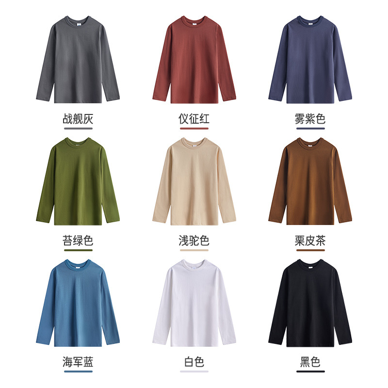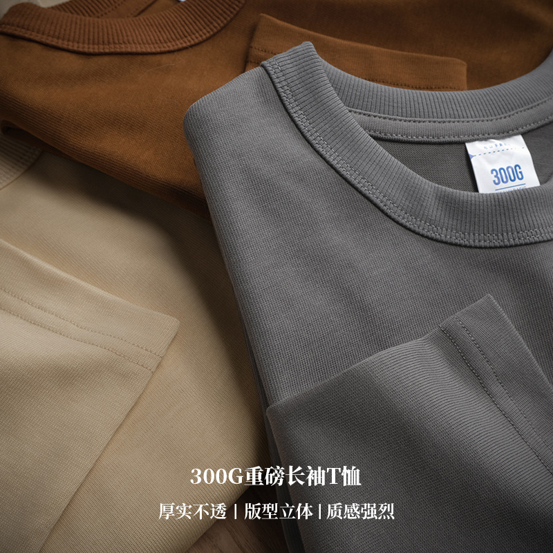 阿美咔叽300g复古重磅长袖 纯棉t恤圆领厚实简约休闲柔软弹力百塔