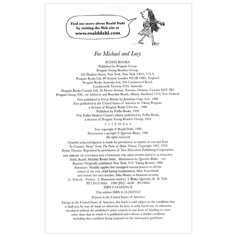 玛蒂尔达 Roald Dahl 儿童故事阅读章节书 Matilda 英文原版 善优童书 预售