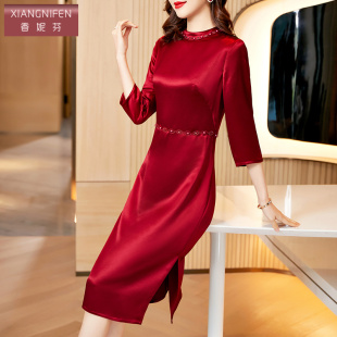 新款 连衣裙女士冬季 裙子气质显瘦小黑裙长裙 复古丝绒长袖 朗姿法式