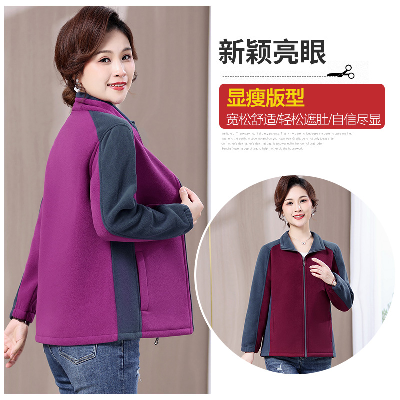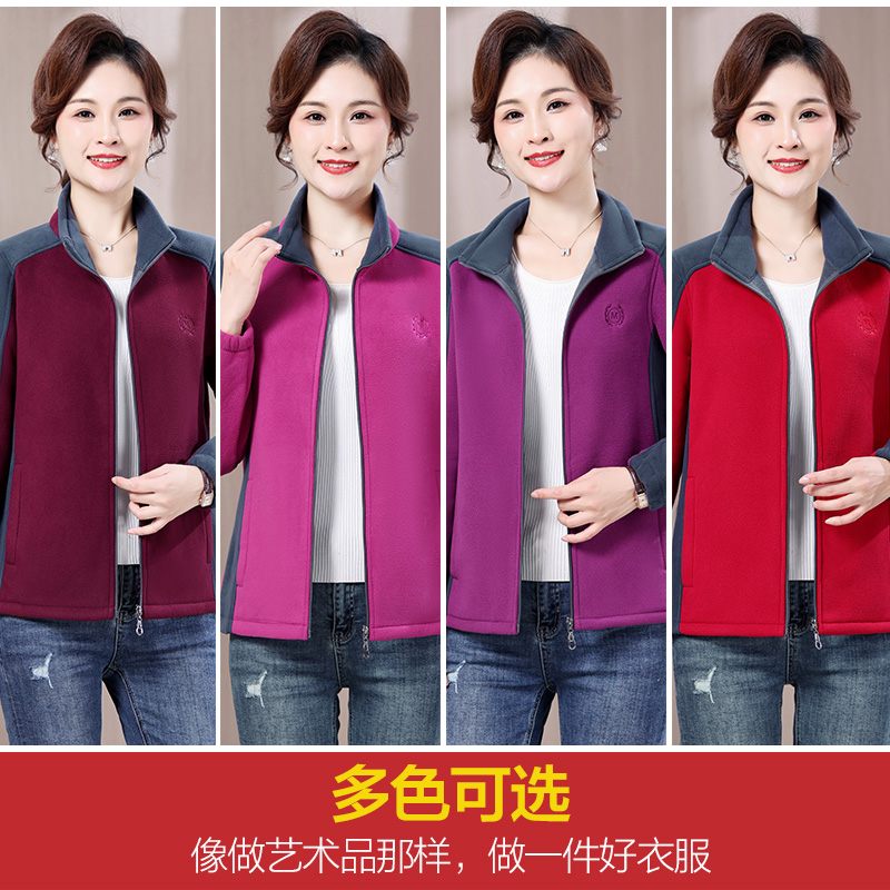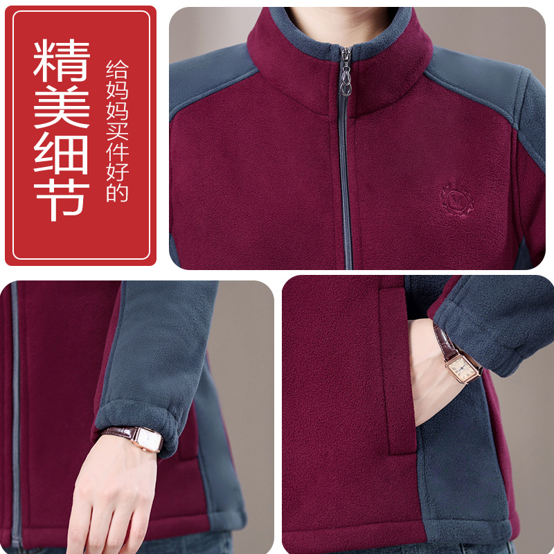 新款 洋气奶奶秋冬装 摇粒绒外套女中年妈妈加绒保暖大码 中老年女装